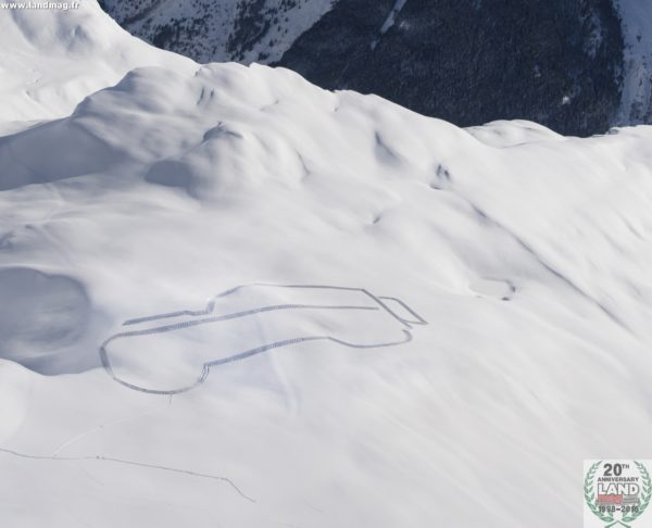 La silhouette géante d’un Defender de 250 m de long a été tracée dans la neige des Alpes françaises à 2700 m d’altitude pour célébrer le 70° anniversaire de Land Rover. Mais c’est surtout l’occasion pour Land Rover d’annoncer le World Land Rover Day : une vidéo en hommage à l’histoire de la marque sera diffusée mondialement le 30 avril 2018, 70 ans après ses débuts au Salon d’Amsterdam en 1948 !