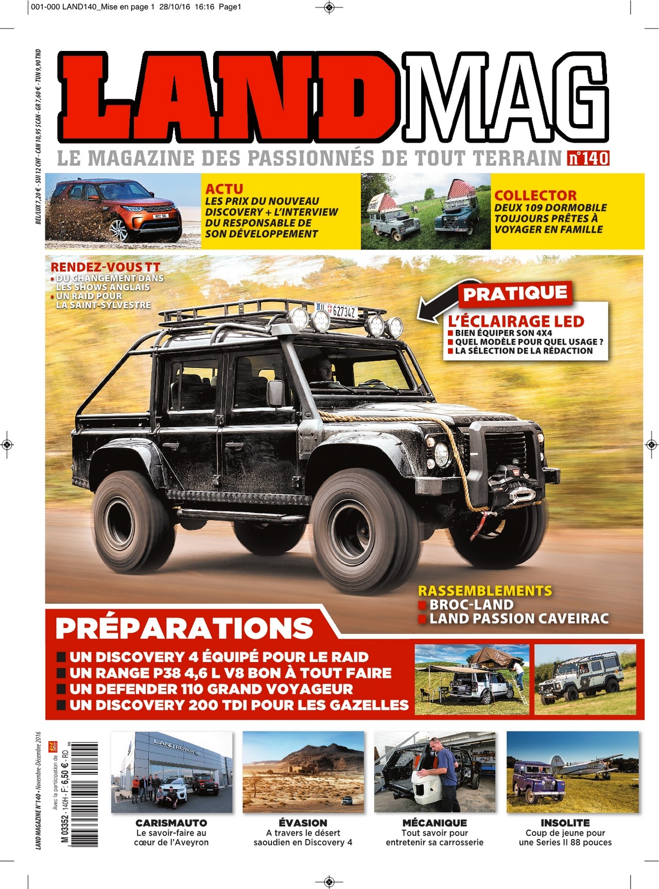 Avec un sommaire hyper complet que nous vous proposons de découvrir ci-dessous. Des prépas (Disco 4, Defender 110 SW « raid », Range P38 V8, Discovery 200 Tdi « Gazelles », …) , des Series collector, un bon dossier sur les LED, les infos les plus précises sur le Disco 5 et le compte-rendu des rasso des dernières semaines, tout y est !