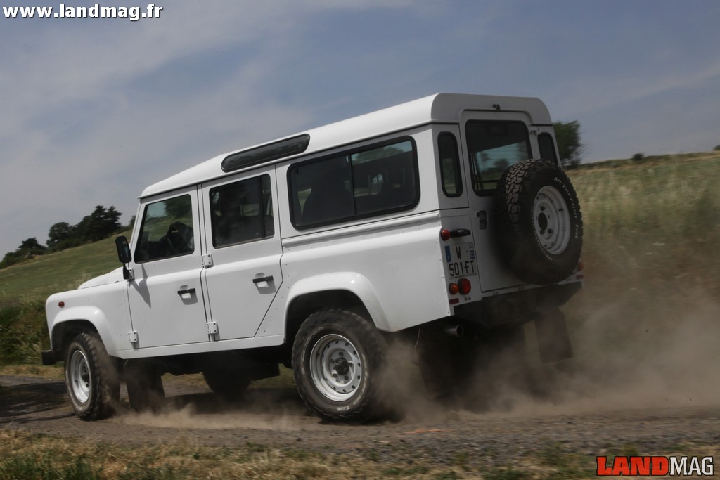 Contrairement aux « autos mobiles » contemporaines, un Def 2015 dénote dans le parc automobile international et évoque immédiatement le baroud, l’aventure ou encore la fonction utilitaire. Véhicule familial, confortable pour enchaîner les kilomètres sur et hors bitume, armé pour le franchissement ardu, facile à équiper et à accessoiriser, le 110 Station Wagon est sans doute le modèle le plus polyvalent de la gamme du Defender. Seule la conformité à quelques normes de sécurité et de lutte contre la pollution manque pour lui permettre de continuer sa belle et longue existence. De fait, il n’y aura plus d’autre évolution de ce Land après celle présentée ici. C’est un constat un peu difficile à faire lorsque l’on est passionné de la marque et du modèle, mais vieux comme neufs, on continuera à voir rouler les Def pendant de longues années encore !