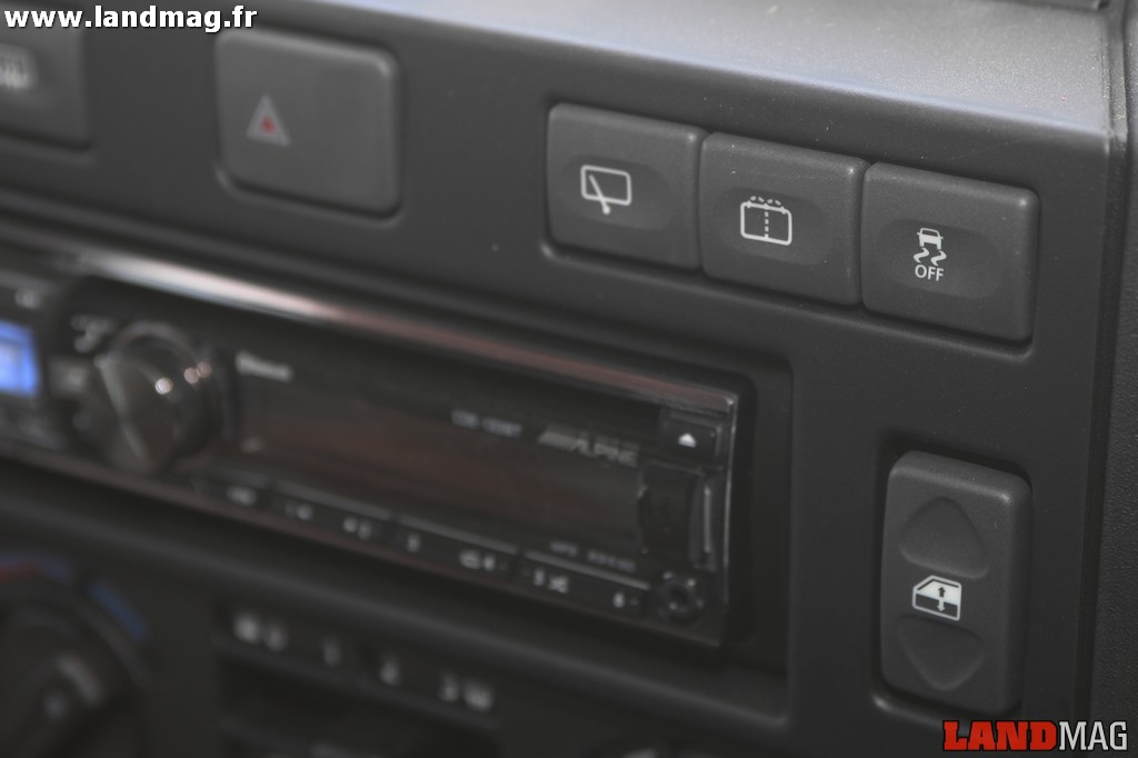On a donc affaire à un Def « tout simple ». Mais comme on le sait bien dans le milieu landiste, rien n’est simple avec un Def. Si l’on se met dans la peau d’une personne qui monte dans ce Land pour la première fois, peu d’éléments permettent de dire que l’on est dans un véhicule neuf, assemblé en 2015 : impossible de le commander avec une boîte de vitesses automatique, un régulateur de vitesse ou un GPS intégré, pas de signature à LED dans les optiques, pas de toit en verre panoramique ou encore de sièges à réglages électriques, ni même de repose-pied côté conducteur… Toutes ces absences, qui font le bonheur du marché des accessoires de seconde monte, rendent le Def actuel véritablement unique en son genre.