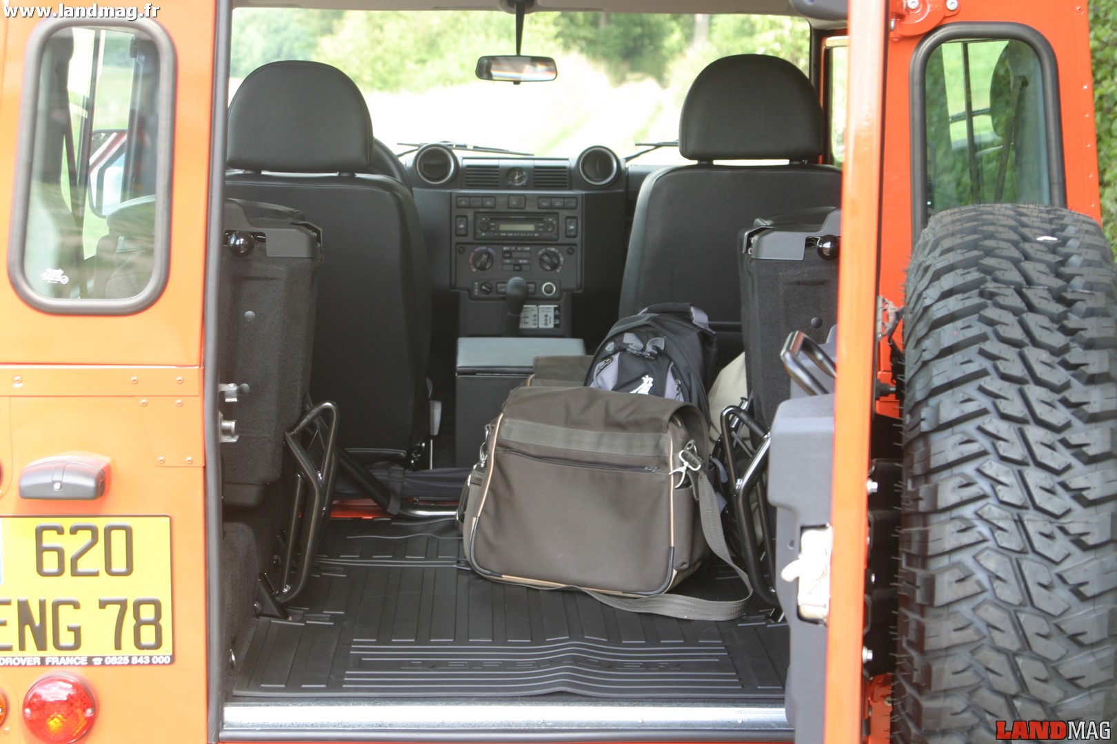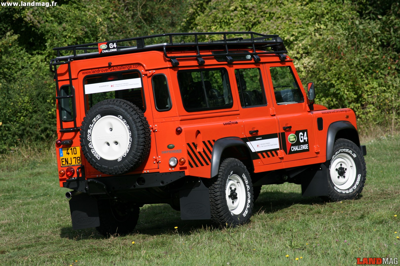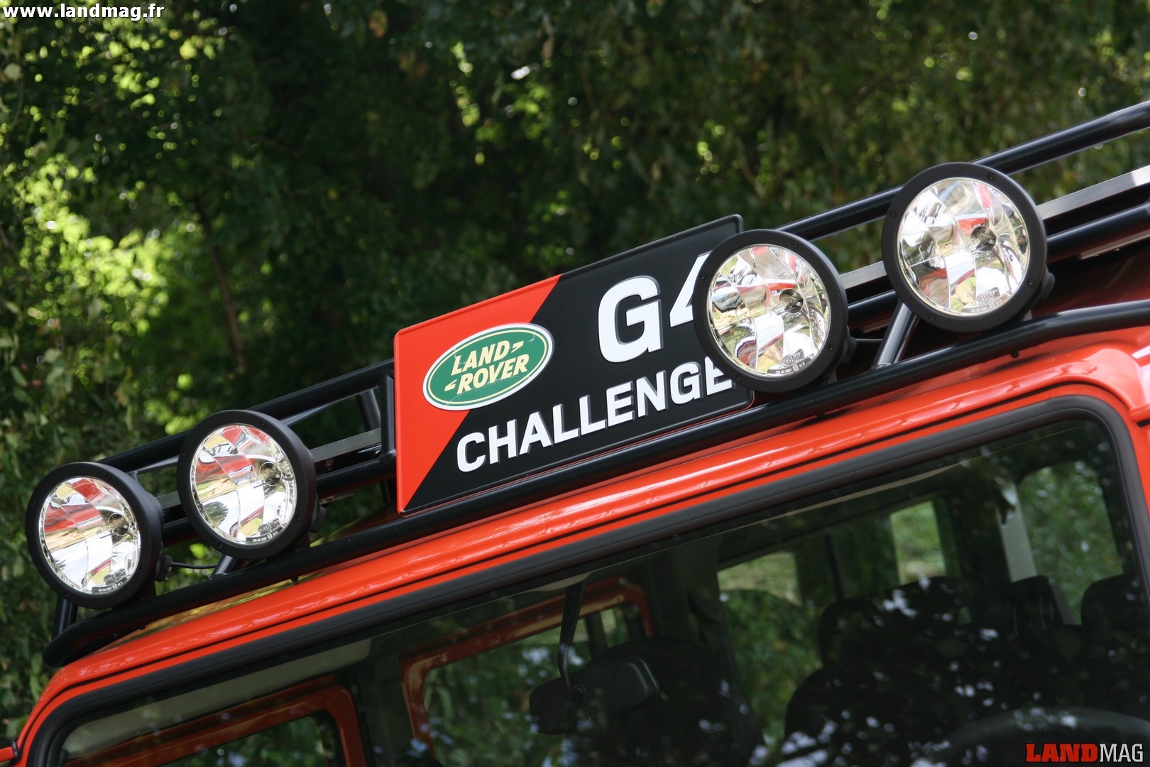 La plupart des baroudeurs vous le diront, on n’a jamais fait mieux que le Defender 110 station wagon pour les voyages au long cours. Alors forcément, il était inévitable que ce véhicule symbolique connaisse sa déclinaison G4 Challenge. Chaussé comme il se doit des pneus Goodyear Wrangler MT/R, il roule sur le bitume en se faisant entendre, mais sa tenue de route reste acceptable, tant qu’il ne tombe pas des cordes. De toute façon, la chaussée goudronnée n’est évidemment pas l’environnement premier de ce Land-là, qui ne demande qu’à aller jouer dans la boue. Avec sa rampe de quatre phares au Xenon sur sa galerie de toit expédition qui inondent les sous-bois de lumière blanche, aucune difficulté du terrain n’échappe au conducteur. Dans un bourbier, ils sont évidemment moins utiles, mais le Def 110 n’a de toute façon pas de grandes difficultés à craindre. Pour peu que la trajectoire soit bien négociée dans les ornières, le long empattement du Land et les talents de sa motorisation 2,4 l TD à bas régime font largement l’affaire. Avec le renfort de l’ETC en cas de patinage prononcé, ce Land bénéficie de tous les atouts pour progresser sans trop difficulté. Conçu ici en version station wagon à cinq places, et intégralement équipé de tapis de sol en caoutchouc, ce Def dispose d’un immense espace de chargement qui ne craint pas de recevoir les affaires dégoulinantes de boue de ceux qui auront pataugé, par plaisir ou par nécessité. Les candidats du G4 Challenge utiliseront ce Defender et un autre, mais équipés d’un treuil, pour les épreuves d’utilisation de cet accessoire et aussi de franchissement.