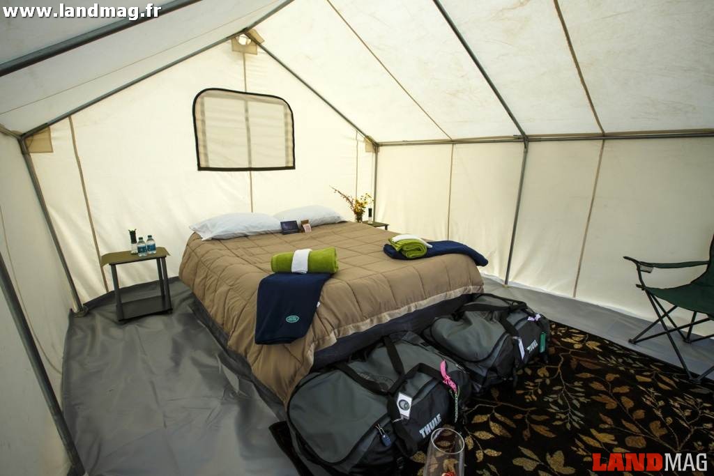 Autrefois les carrioles des pionniers devaient être « treuillées » car les attelages de chevaux ou de bœufs ne suffisaient pas à contrer la forte pente… Aujourd’hui, le Terrain Response trouve du grip en montée et le Hill Descent Control permet de regarder les montagnes environnantes en toute sécurité pendant la descente ! Plusieurs crevaisons sont tout de même à signaler, les pneus route et à profil bas des Range moderne n’appréciant pas les pierres trop coupantes. Le soir c’est un bivouac 4 étoiles qui attend les membres de l’expédition, avec repas gastronomique et tentes de charme. On est loin du Camel Trophy !