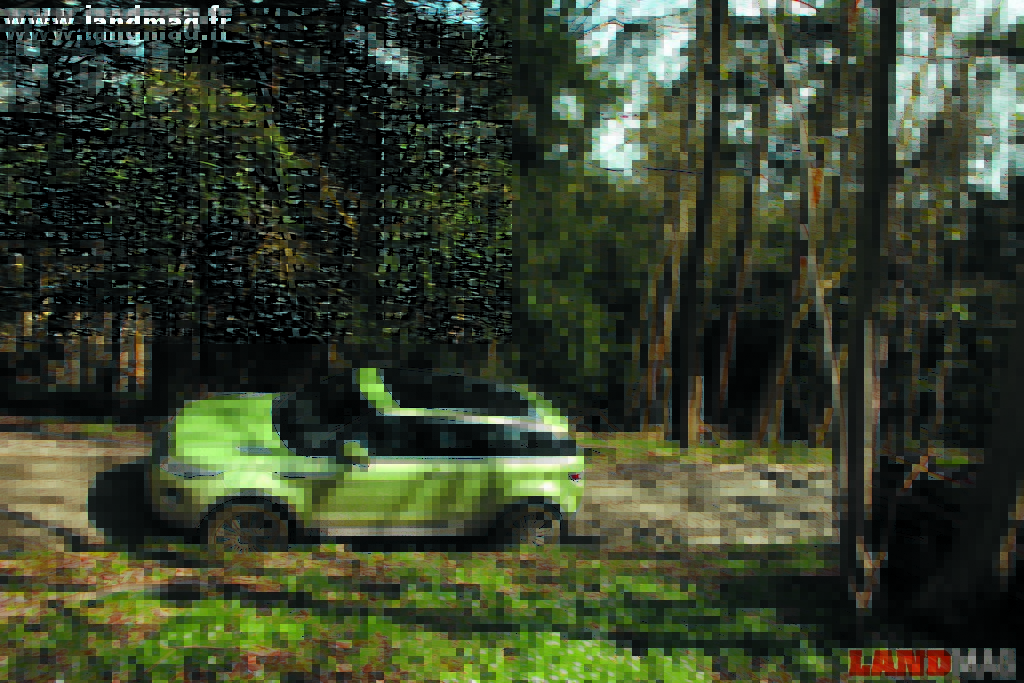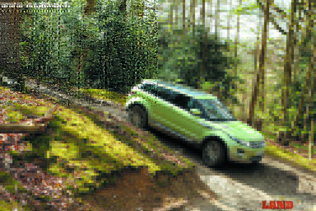 La preuve en est qu’il a passé le test des pistes boueuses d’Eastnor Castle, la maison-mère du Land Rover Experience. A grand renfort d’aides électroniques (Terrain Response quatre modes, DSC, HDC, ETC, GRC…), les performances hors-bitume de l’Evoque sont exactement du même ordre que celles du Freelander 2, par ailleurs donneur de nombreux organes. On peut même les estimer un peu supérieures, grâce à l’adoption sur le petit Range d’une direction assistée électrique, et non hydraulique. Ce choix permet au Terrain Response d’intervenir sur un élément supplémentaire : en mode « Sable », par exemple, il accélère la réactivité de la direction et utilise beaucoup le retour actif du volant pour limiter la perte de motricité de coups de volant parasites ; en mode « Boue et Ornières », parfait pour le site d’Eastnor Castle, il s’agit plus de compenser la friction dans la direction afin de moins subir le sol, en termes de sensations au volant, tout en laissant filtrer les « informations » importantes.