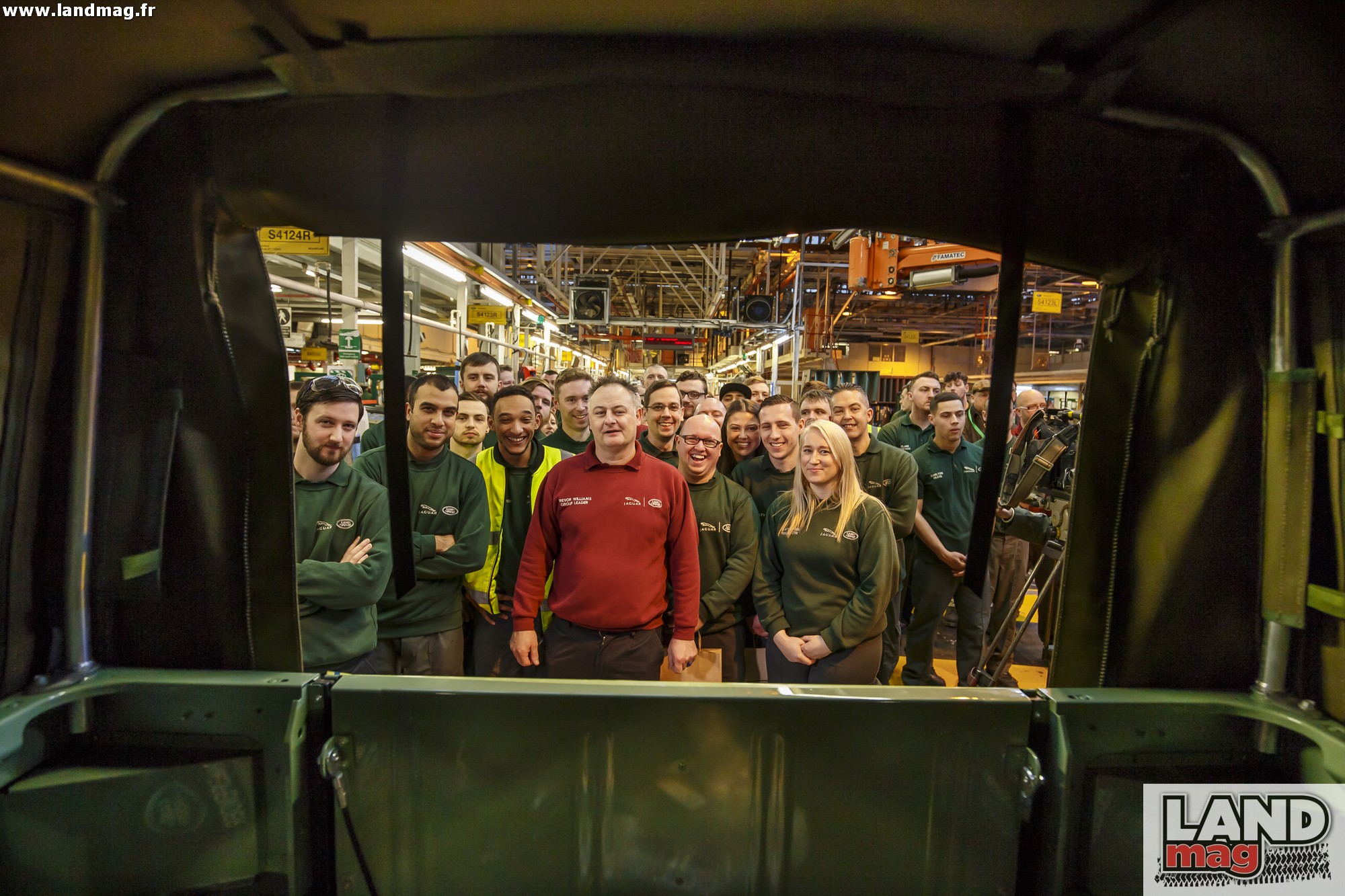 Land Rover avait invité 700 ouvriers ou ex ouvriers qui avaient travaillé à une période de leur vie sur la ligne de montage, devenue anachronique dans les années 90. Au fur et à mesure que ce Def avançait sur la ligne de montage et complétait son équipement, on voyait derrière lui… le vide, rien, puisqu’aucun autre Defender n’allait le suivre sur cette ligne de fabrication à l’ancienne. À 09h22 précise heure de Greenwich, ce dernier Defender démarrait enfin et quittait son cocon, entouré d’applaudissements et de « vivas », pour un court voyage vers le Land Rover Heritage Museum tout proche. C’est là qu’il vivra le restant de ses jours une triste vie de symbole vivant, sans jamais aller goûter comme ses prédécesseurs les joies du tout terrain.