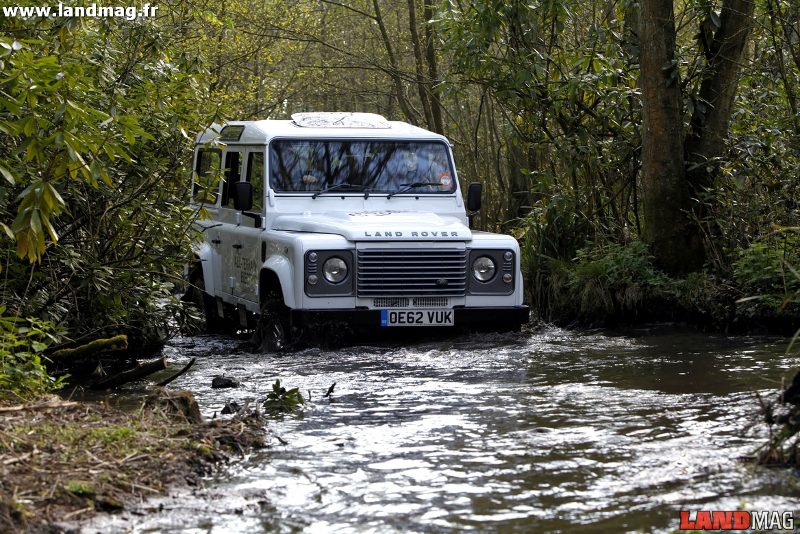 Au sein de l’usine de Solihull, en plus de sa piste de franchissement traditionnelle, le Land Rover Experience entretient depuis longtemps la Jungle Track. En 2013 Land Mag a eu la chance de parcourir ce bayou planté en plein cœur de l’Angleterre à bord des Defender 100% électriques présentés au dernier Salon de Genève.