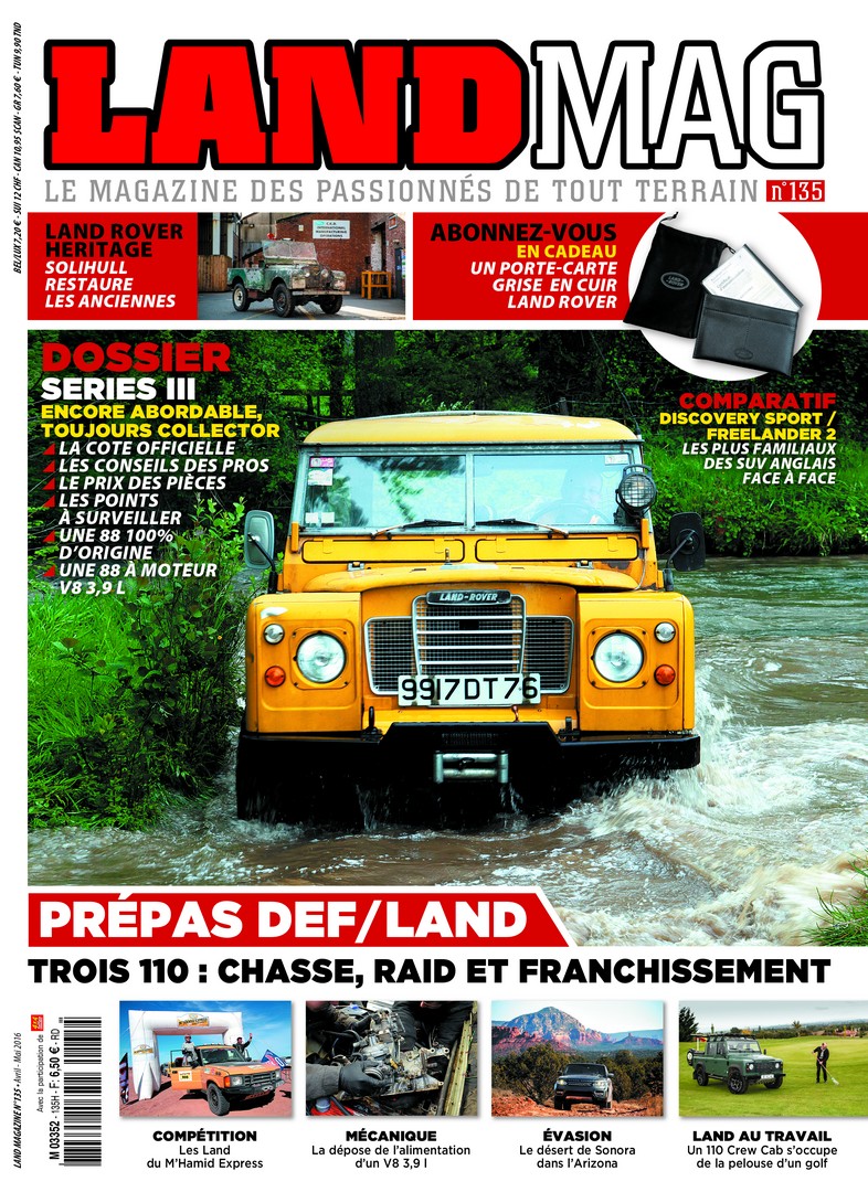 Land Mag 135 sera disponible pour les abonnés puis dans les kiosques à partir du 1° avril, et ce n’est pas une blague ! Au menu de ce nouveau numéro trois belles prépa sur base de Land et Defender, un dossier sur les Series III qui deviennent les Land les plus abordables actuellement (avec une prépa aussi !), de la mécanique sur V8 3,9 l de Range Classic, le M’Hamid Express, un face à face original entre le Disco Sport et le Freelander 2, etc etc !