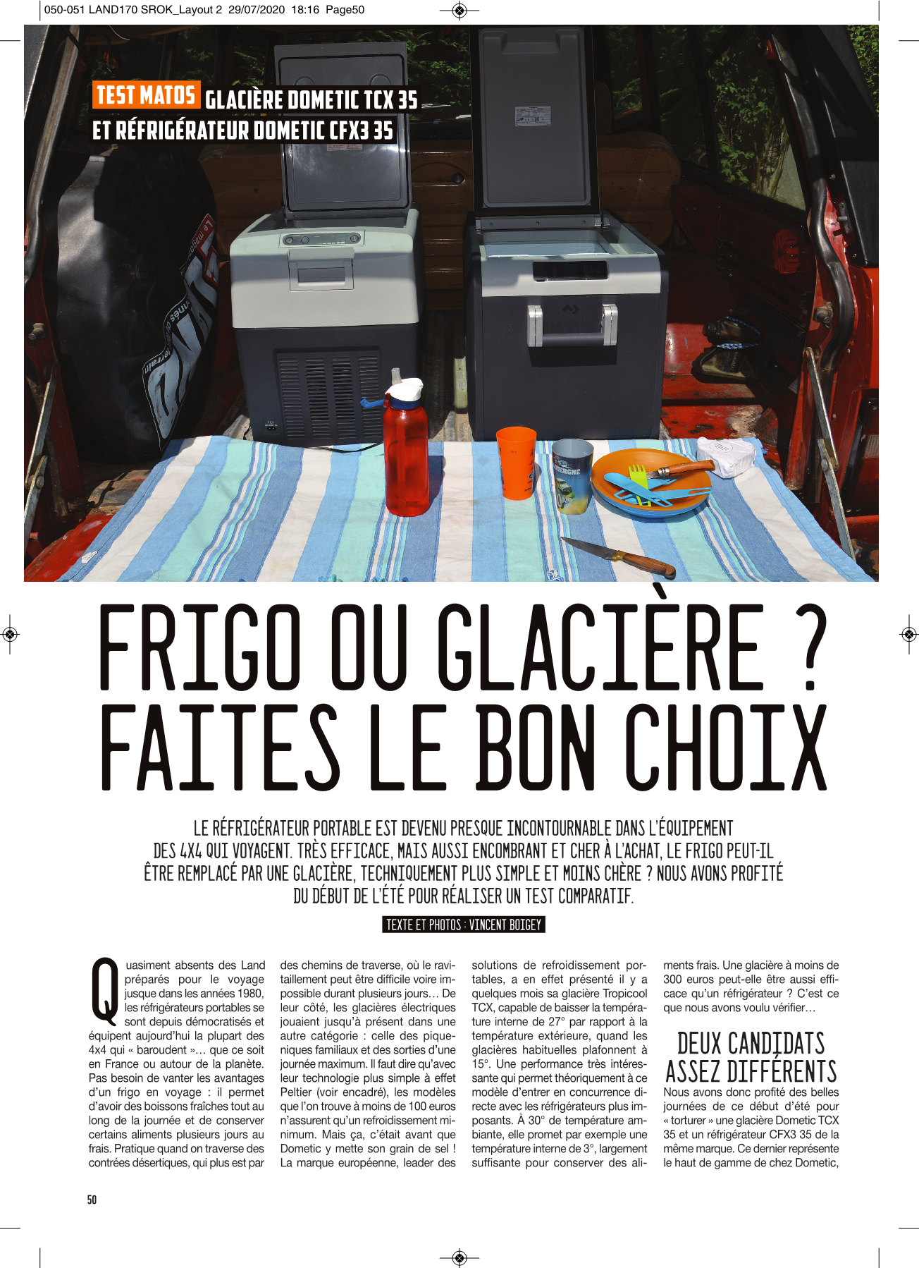 Toujours pratique, Land Mag vous propose deux Test Matos pour les bivouacs et les voyages: un comparatif Dometic entre une glacière et un réfrigérateur, et l’essai de la toute nouvelle tente Quechua 2 Seconds. Est-elle enfin simple à replier ? Vous allez le savoir… Et si le passage du Contrôle Technique vous stresse, notre dossier va vous donner de bons conseils pour affronter cette épreuve sereinement.