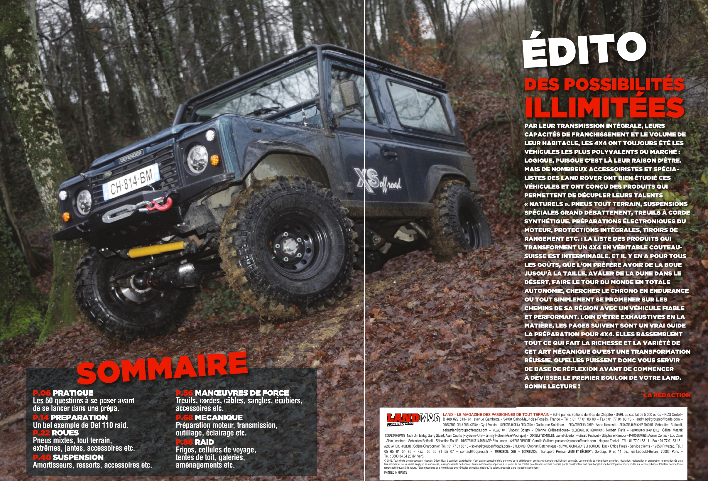 Les pages qui suivent sont un vrai guide de la préparation pour votre 4×4. Elles rassemblent tout ce qui fait la richesse et la variété de cet art mécanique qu’est une transformation réussie. Qu’elles puissent donc vous servir de base de réflexion avant de commencer à dévisser le premier boulon de votre land. Bonne lecture !