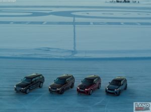 Cette œuvre d’art de 260 m de diamètre a rempli le centre du circuit central de la piste d’essai, où tous les futurs modèles Land Rover sont mis à l’épreuve pendant leur développement afin de tester leur résistance aux températures extrêmes. L’installation d’Arjeplog est basée sur un lac gelé qui fournit aux ingénieurs de Land Rover les conditions parfaites pour tester et évaluer leurs derniers modèles.