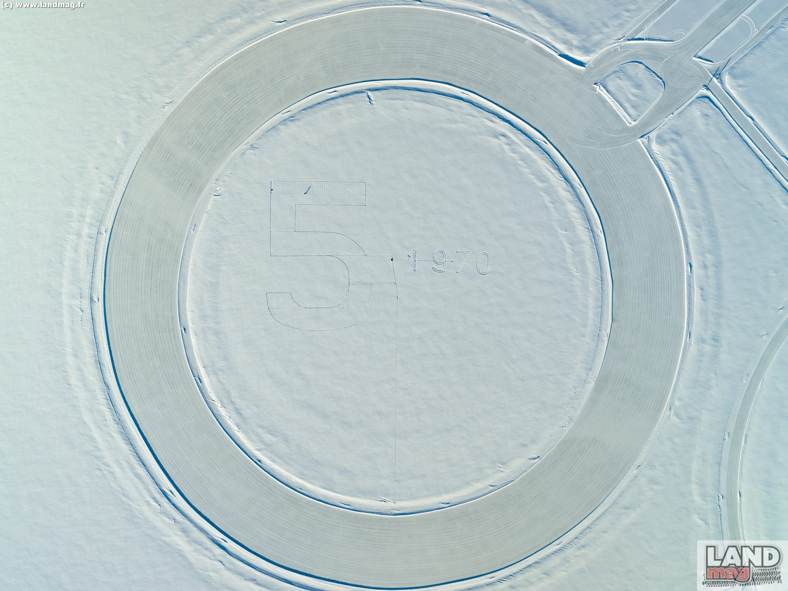 C’est le célèbre artiste Simon Beck, spécialisé dans les œuvres sur neige, qui a créé le logo de l’anniversaire de 53 092 m², en parcourant plus de 45 000 pas à travers la surface poudreuse à l’intérieur du circuit, accompagné d’un quatuor de la gamme Range Rover SV. Un travail qui rappelle bien entendu celui réalisé sur la plage anglaise d’Anglesey en 2015 pour célébrer le Defender, mais aussi la silhouette du nouveau Defender dessinée en 2018 dans la neige des Alpes françaises.