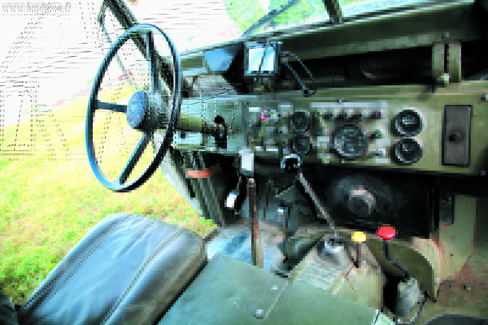 Pour une utilisation sans problème dans des conditions de travail difficiles, le Lightweight dispose d’un radiateur supplémentaire d’huile placé devant le radiateur du traditionnel circuit de refroidissement. On retrouve sous le capot du 88 Militar le fameux moteur Diesel Rover de 2l ¼ très prisé à l’époque sur le continent européen. Pour l’anecdote, un deuxième filtre à gazole « de dépannage rapide » a été posé à côté du filtre principal. Les militaires britanniques préféraient le moteur 2 l ¼ essence au Diesel et le Lightweight de ce comparatif est représentatif de cette demande. Bien que de nombreux Lightweight dits FFR pour Fitted For Radio soient dotés d’un système électrique en 24 V, notre Lighweight dispose d’une alimentation électrique en 12 V ainsi que d’une conduite à gauche qui laisse supposer que ce modèle à principalement servi sur le continent, en Allemagne ou en Belgique très probablement.