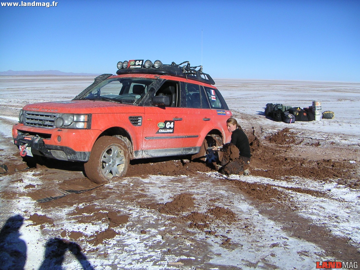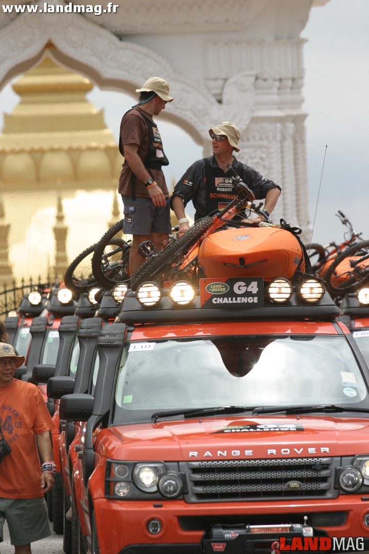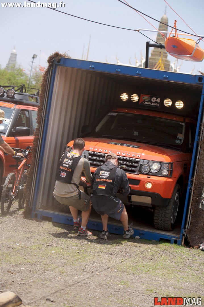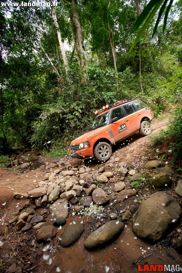 Quatre semaines, quatre pays : l’édition 2006 du G4 Challenge de Land Rover promettait l’aventure à une quinzaine de sportifs de tous les continents du globe, à bord de ses 4×4. Promesses tenues, sur les pistes de la Thaïlande, du Laos, du Brésil et enfin de la Bolivie ! Toute la gamme Land était sur le front, mais le Range Rover Sport était le véhicule-phare des étapes asiatiques, dans une version modifiée jusqu’au bout des roues. Il s’agissait à la base de modèles haut de gamme HSE à moteur 4,4 l V8 atmosphérique, mais qui avaient été équipés d’une galerie de toit en aluminium à quatre phares additionnels, d’une prise d’air rehaussée, d’un treuil électrique intégré au bouclier avant, de grilles de protection de feux et de pneus à profil tout terrain.