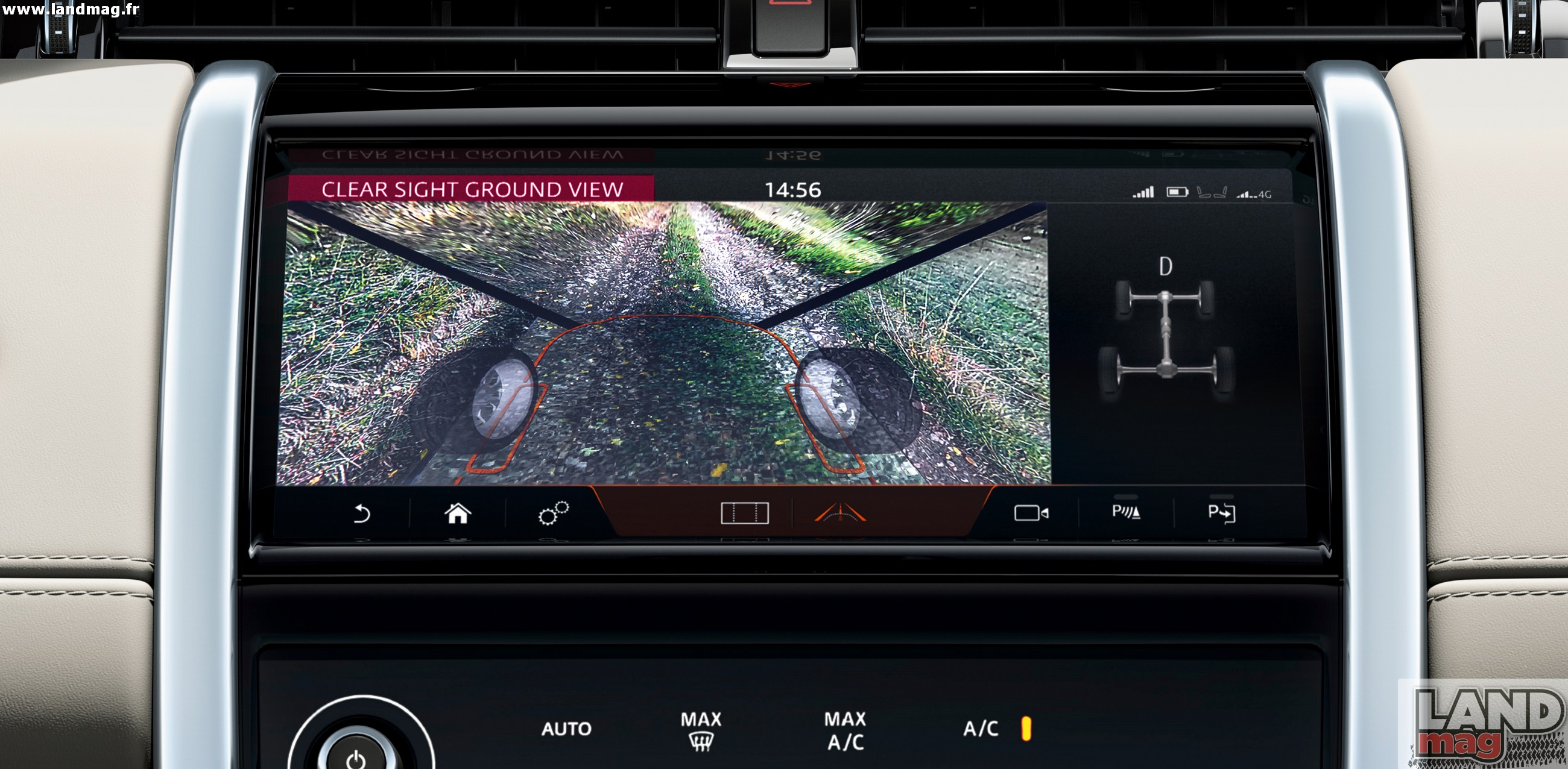 Comme l’Evoque il dispose logiquement des nouvelles technologies apportées par cette nouvelle plateforme. La technologie de vision au sol ClearSight Ground View d’abord. Basée sur le concept Transparent Bonnet de Land Rover, cette dernière permet d’afficher sur un écran une vue à 180 degrés sous l’avant du véhicule afin de mieux appréhender les terrains difficiles ou les places de parking étroites. Pour la rétrovision, c’est le système ClearSight RearView qui s’en charge ensuite, avec son rétroviseur qui fait aussi écran HD et qui peut donc reproduire la vision de la caméra arrière.