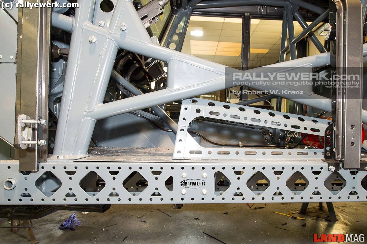 Voici donc les premières images du Bowler CSP N°1 que l’équipe de Drew est en train de tester et de mettre au point en Angleterre. Ces images exclusives montrent bien le châssis entièrement nouveau ainsi que les incroyables suspensions indépendantes provenant d’un Range Sport mais équipées de ressorts hélicoïdaux ! Le travail en matière de châssis et de liaisons au sol est hallucinant… On vous en reparle bientôt dans Land Mag 😉