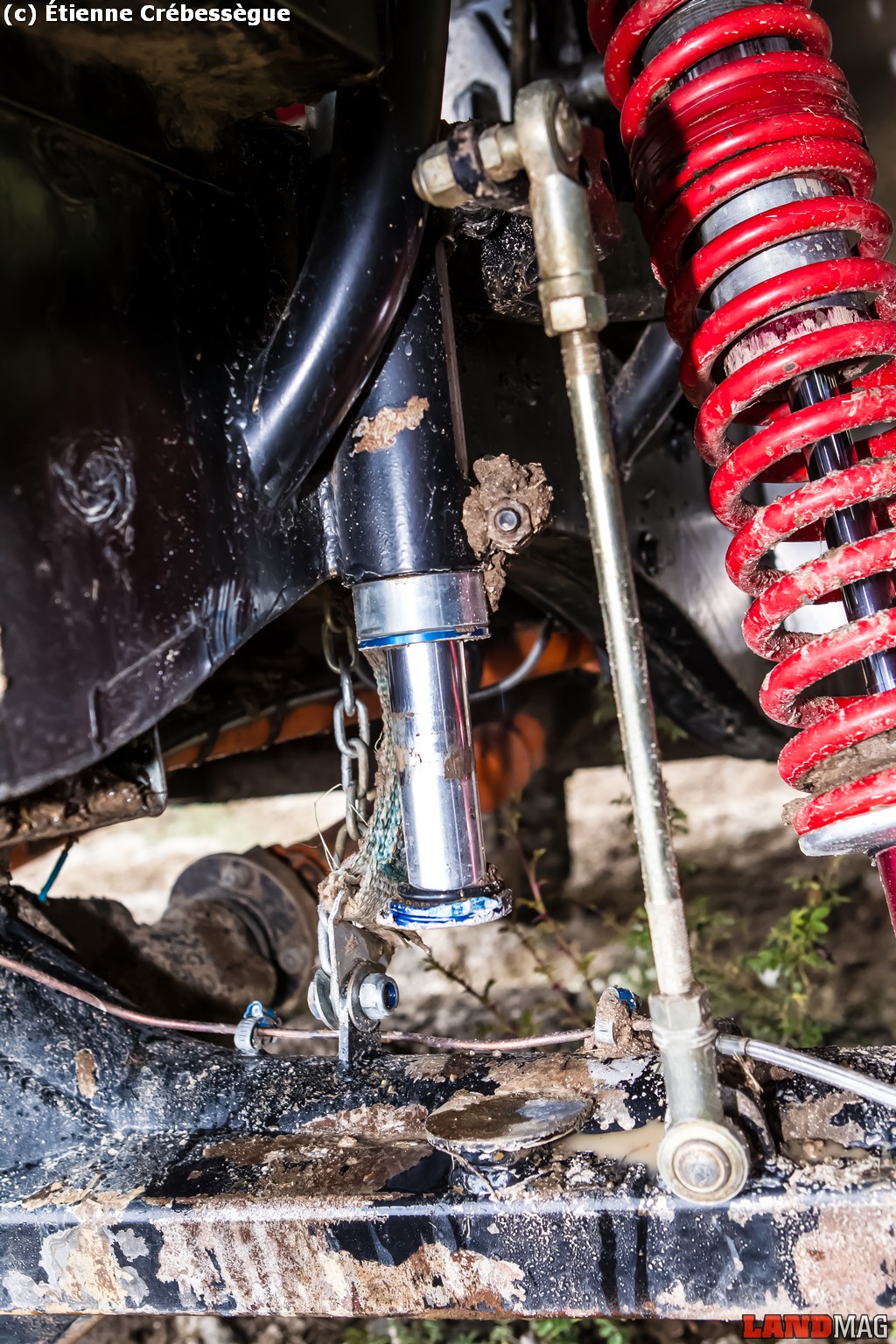– Franck Daurelle : Avant de prendre le départ, nous allons renforcer le pivot. Sur la dernière course, il s’est montré particulièrement fragile. On a d’ailleurs dû terminer sur 3 roues dans une grosse montée, le tout aidé de notre treuil. Nous avons rencontré Thomas Rivollet et sa solution est particulièrement intéressante pour pallier ce problème de fiabilité. Le montage est costaud et ingénieux. Ce sera donc lui aura la charge de fiabiliser notre DEF à ce niveau. Il reste aussi à revoir le faisceau électrique. À force d’être sujet à l’humidité, il a besoin d’une remise à neuf.