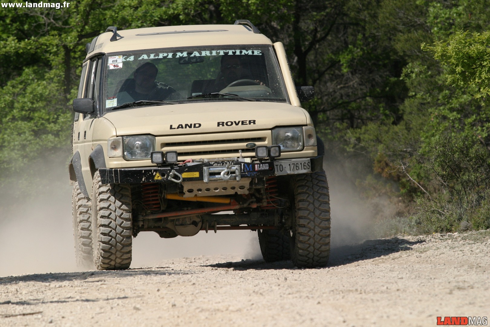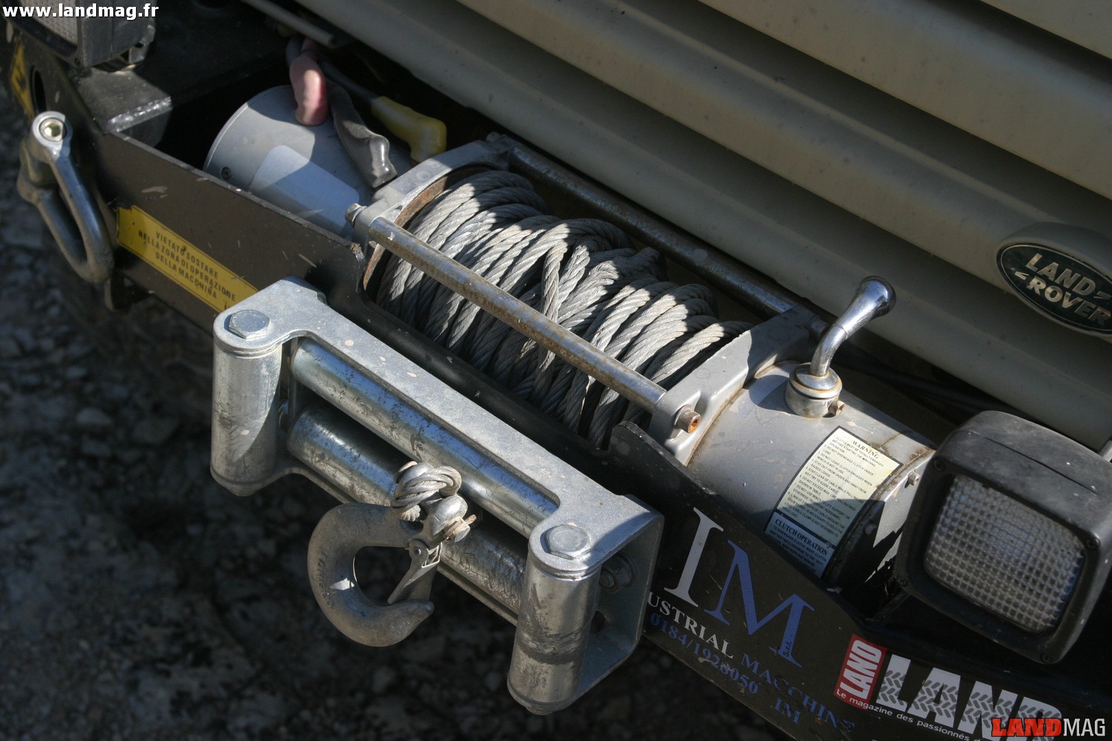 Afin d’utiliser son Discovery tant en balade tout terrain qu’en franchissement extrême, Simone dispose de deux jeux de pneumatiques rechappés Ziarelli différents qu’il monte sur ses jantes Modular de 16 pouces. Pour les chemins, il opte pour des pneus Ziarelli Maxi de dimensions 285x75x16, en franchissement, il change pour des Ziarelli Estreme de dimensions 235x85x16. Connu pour sa fiabilité, le moteur 200 tdi n’a pas été modifié, hormis la pose d’un schnorkel de la marque italienne Burningtech. D’une manière générale, l’équipement extérieur du véhicule est relativement sommaire puisqu’il ne dispose à l’avant que de quatre projecteurs à longue portée et d’un treuil T-Max 12 000 fixés sur le pare-chocs.