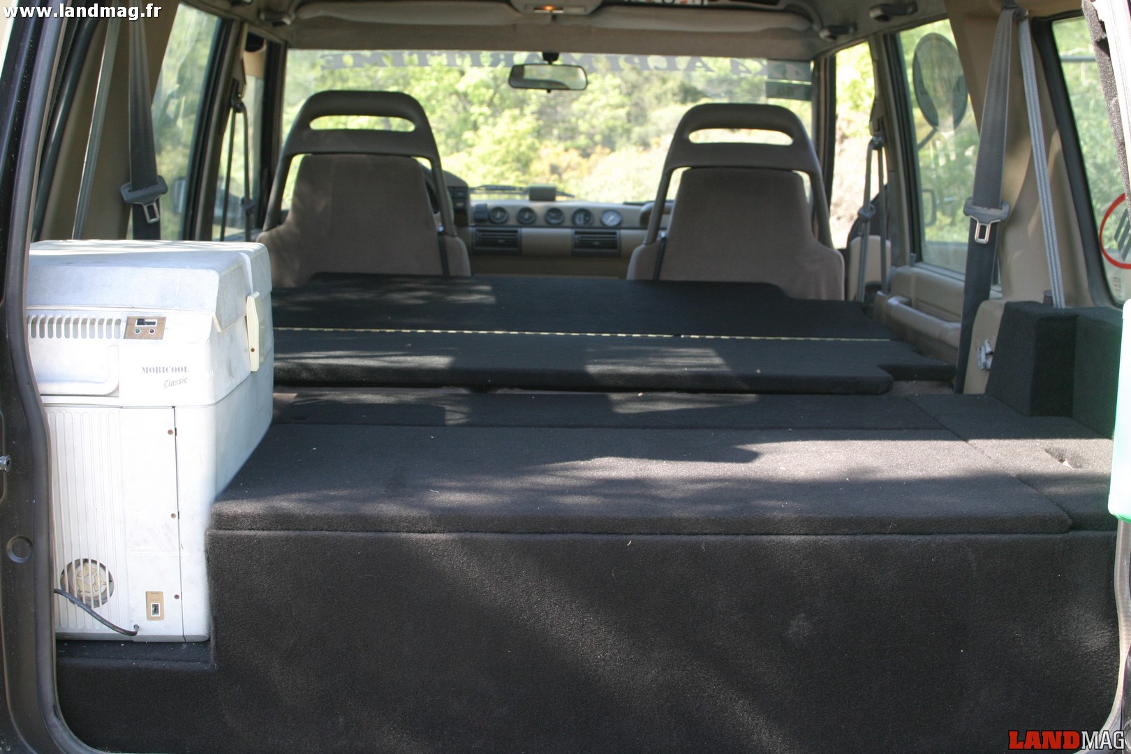 L’habitacle demeure aussi sobre mais a pour particularité de pouvoir être modifié en deux places uniquement, l’arrière pouvant être transformé en couchage en rabattant la banquette. Astucieux, ce système possède aussi de nombreux rangements pour le voyage sous le couchage. Côté équipement, seuls une CB et un réfrigérateur Mobicool Classic sont à noter. Afin de palier au mieux les besoins en électricité, Simone a installé une batterie supplémentaire Inova T4 avec un répartiteur de charge dans le but d’optimiser l’usage des deux batteries. Toujours très sobre, le Discovery dispose d’une peinture de couleur sable mat signée British Passion qui rappelle les véhicules militaires préparés pour le désert. Avec un budget de plus ou moins 14 000 euros, et un millier d’heures de labeur, Simone Motosso a su faire de son Discovery 1 un véhicule polyvalent, apte au franchissement extrême comme au voyage, à partir d’une épave et prouve qu’à force de persévérance, rien ne peut arrêter sa passion Land Rover.