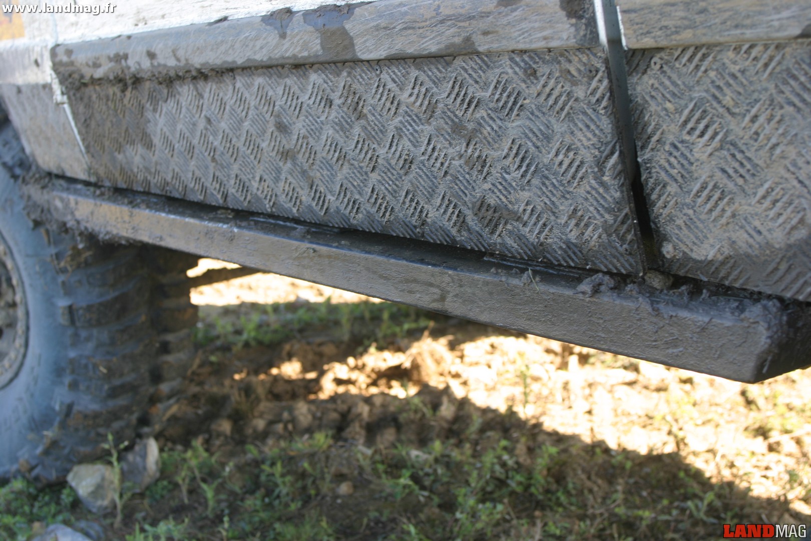 Un grand nombre de landistes se fait faire une pare-chocs sur mesure par un chaudronnier ou un soudeur. Certes plus résistant et parfois plus esthétique, ce type d’équipement est néanmoins à la limite de la légalité sur route. Il existe des pare-chocs adaptables ont pour particularité d’être homologués par le constructeur, il convient donc d’en tenir compte lorsqu’on s’apprête à modifier les éléments extérieurs de son véhicule. Ceci étant, les pare-chocs adaptables sont souvent spécialement étudiés pour chaque modèle. En ce qui concerne les bas de caisse, peu de landistes apprécient les marchepied car ils diminuent les capacités de franchissement du véhicule. En revanche, il est tout à fait possible d’adapter un marchepieds, de même qu’un système d’attelage sur la traverse arrière d’un Defender. Ce type d’équipement limite peu l’angle de fuite du véhicule du fait de son porte-à-faux arrière très court. Néanmoins, mieux vaut privilégier le système d’attelage amovible à goupille qui s’intègre parfaitement au pare-chocs arrière et ne risque pas de se planter dans le sol en franchissement.