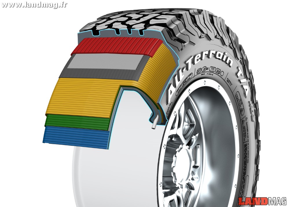 Si le BF Goodrich All Terrain T/A KO est un des pneus de tout terrain les plus vendus au monde, ce n’est pas un hasard. Ce pneumatique mixte a été mis au point par BF Goodrich en 1976 alors qu’il n’existait à l’époque aucune gomme spécifiquement dédiée au tout terrain. Les pick-up qui participaient à la célèbre Baja 1000 aux USA devaient se contenter de pneus agricoles peu endurants… Le All Terrain T/A KO est donc devenu rapidement un « classique » pour les amateurs de pistes et a défini une fois pour toute les caractéristiques du pneu mixte idéal : bon partout (asphalte, terre, boue, sable, …), mauvais nulle part (sauf peut-être sur la glace), endurant pour les raids et accrocheur pour le franchissement. Le All Terrain T/A KO a ensuite évolué techniquement : une deuxième puis une troisième génération sont apparues en 1986 et 1999, mais il n’y avait plus rien depuis 15 ans alors que la concurrence a su réagir et proposer à son tour des pneus adaptés au besoin des landistes. BF Goodrich a donc mis ses ingénieurs au travail pour renouveler son best-seller, et nous avons pu découvrir le tout nouveau All Terrain T/A KO2 en première européenne il y a quelques semaines lors du Landrauvergne.