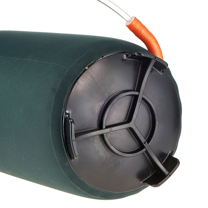 La marque Quechua a eut la bonne idée de combiner une traditionnelle douche de camping avec un pulvérisateur à pression. Résultat : pas besoin de chercher une branche pour accrocher cette douche portable, il suffit de mettre le récipient sous pression (une vingtaine de « pompages » suffisent) pour pouvoir prendre une douche facilement, le réservoir posé à coté de soi. L’eau peut éventuellement être chauffée si le réservoir -réalisé en matière plastique noire souple – est laissé suffisamment longtemps au soleil, par exemple fixé sur la galerie de toit du Land. Un petit thermomètre est même intégré pour connaître sa température !