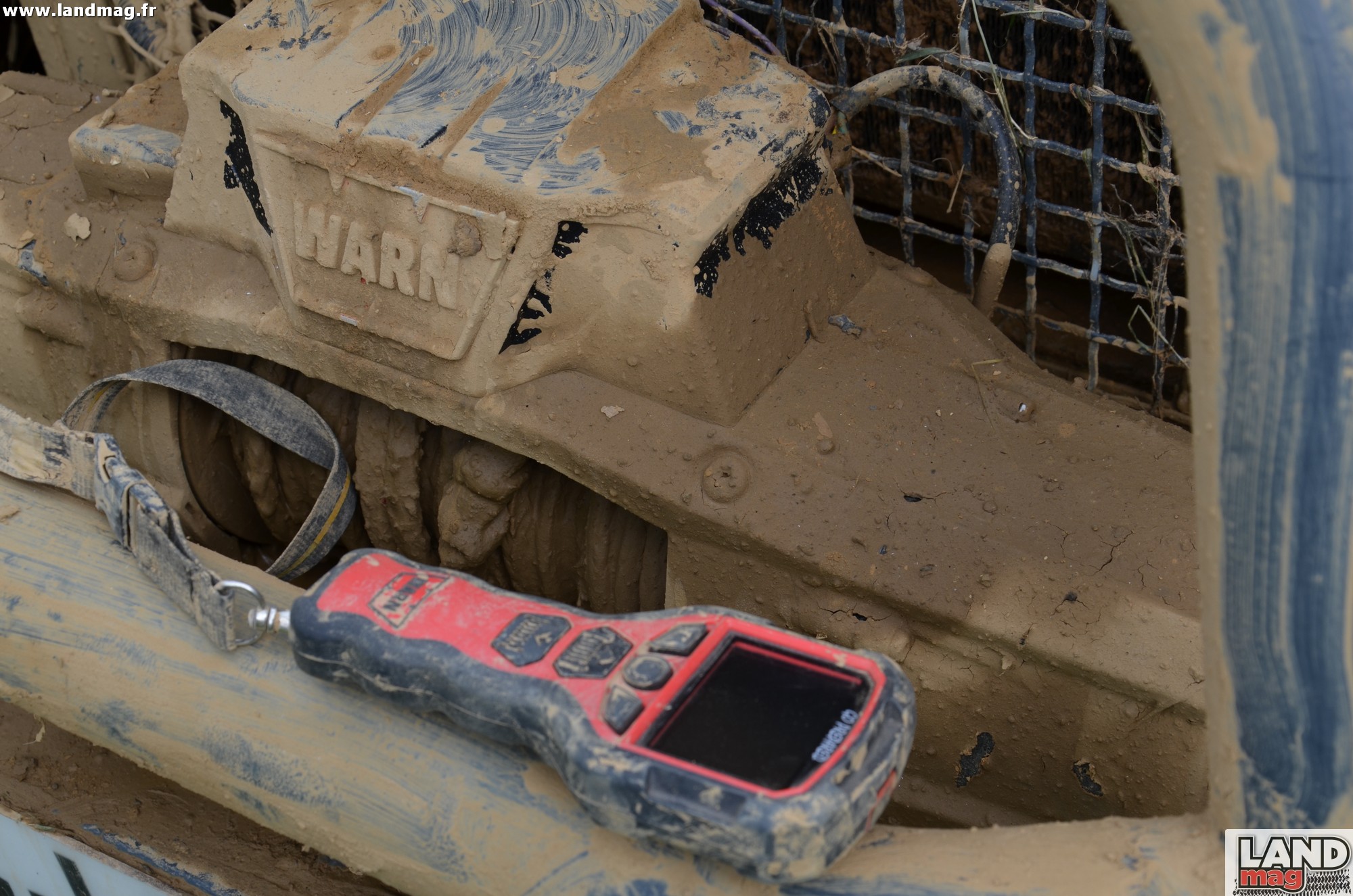 « La télécommande sans fil qui gère l’ensemble du fonctionnement du treuil est une solution idéale. On a tous été embêtés par le câble qu’il faut brancher, puis qui s’emmêle… et aussi par la manette de roue libre quand par exemple tout l’avant du Land est sous l’eau ou sous la boue ! C’est vrai qu’au début il faut apprendre à l’utiliser, mais contrairement à ce que l’on peut penser cette télécommande est très réactive. Et l’ensemble est bien conçu : on a la température du treuil et le niveau de batterie, ce qui permet de l’utiliser même moteur calé car on sait ce que l’on a en « réserve ». La télécommande se recharge en 5 heures environ sur l’allume-cigare avec un simple câble USB comme un téléphone, et après une charge complète elle peut fonctionner 2 ou 3 jours. Il y a de quoi voir venir, et au pire elle fonctionne aussi branchée à l’allume-cigare, donc on n’est jamais en panne. Pour ce qui est du treuil lui-même, aucun souci, je l’ai testé dans des conditions extrêmes et il est parfaitement étanche ! »