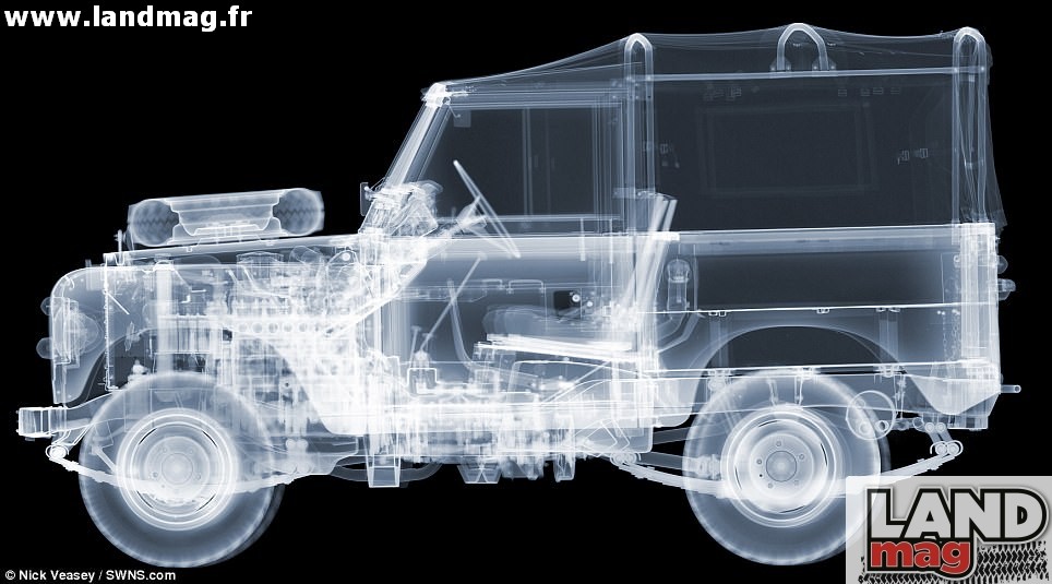 Voilà une drôle d’idée de prime abord. C’est pourtant ce qu’à fait l’artiste anglais Nick Veasey, qui a mis en place un étonnant studio photographique : un plateau pivotant placé à plus d’un mètre du sol, dans une salle isolée de l’extérieur par des murs se sable de 4 m d’épaisseur ! Il était situé en Allemagne, au sein du Fraunhofer Institute. Ce studio a permis de tirer le portrait au Rayons X de nombreux véhicules, entres autres une Series III de 1962.
